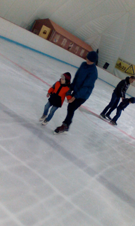 Еще на выходных были на катке. 15 мину занятий с тренером, и Олежке надоело))) Пил с папой чай, а мама каталась в свое удовольствие, не была на катке 5 лет))