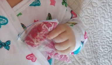 С утра проводили не много времени на развивающем коврике. Трогали различные игрушки предлагаемые мной материалы. Играли с крупами насыпанными в прозрачные кулечки.