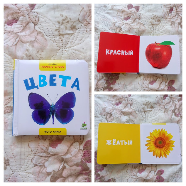 Сам же Миша очень любил «почитать» книжку про цвета. Я листала, а он очень эмоционально комментировал).