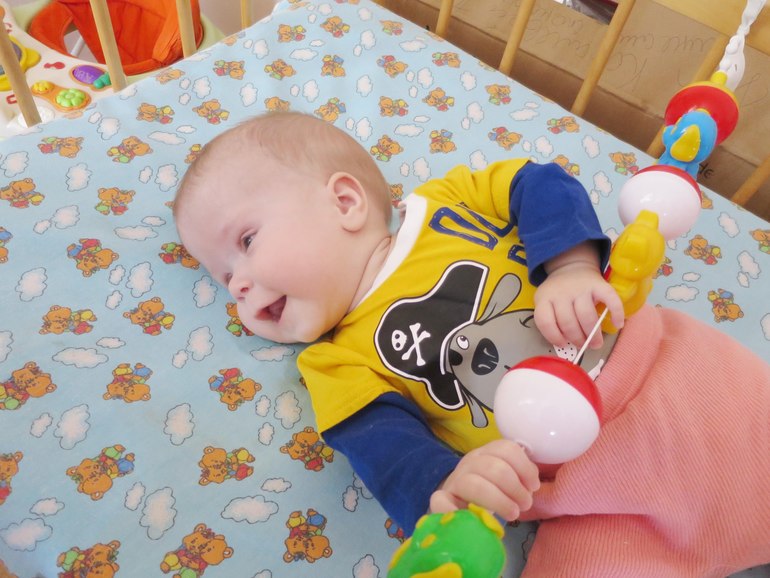 Решила написать о нас и наших достижениях.Нам сегодня 5 месяцев. Мы умеет переворачиваться со спины на живит и обратно,балансировать на животе,тянемся за игрушками,любим слушать музыку,пытаемся ползать получается только ногами руки еще ни как,любим рассматривать лица людей и игрушек и кушать в ложки прикорм и кашки.Появилась любимая еда.Садится пока не просит и я не настаиваю.Слюни текут ручьем,а зубов пока нет.Вот пока такие наши маленькие достижения.