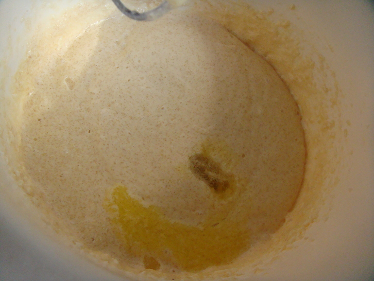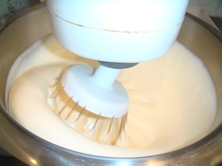 Добавить по 1 четыре яйца, продолжая взбивать: