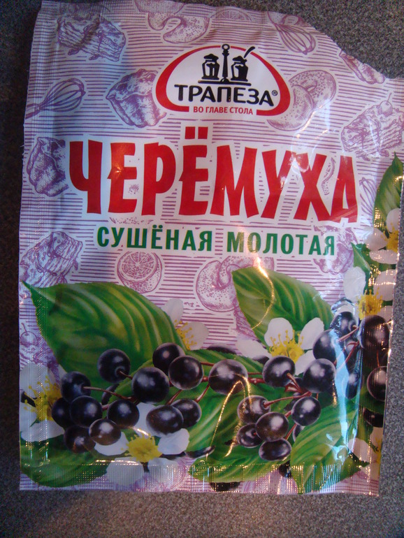 Всыпать в чашку (350 мл) черемуху и до верха муку: