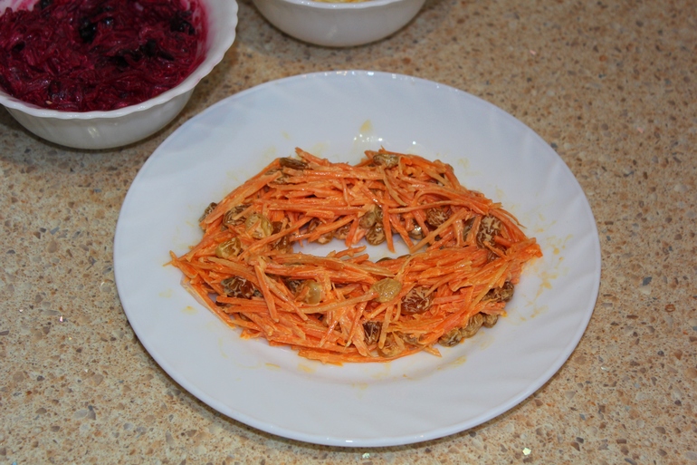 Первый слой морковь с изюмом