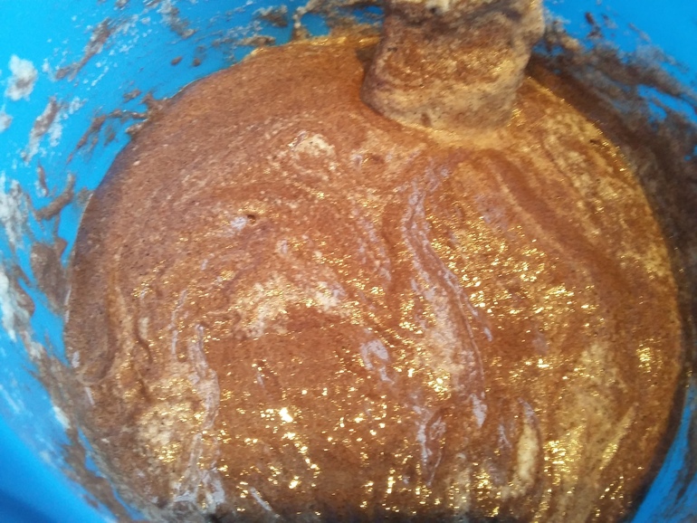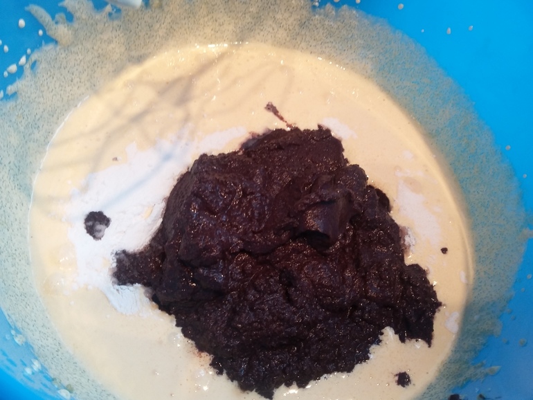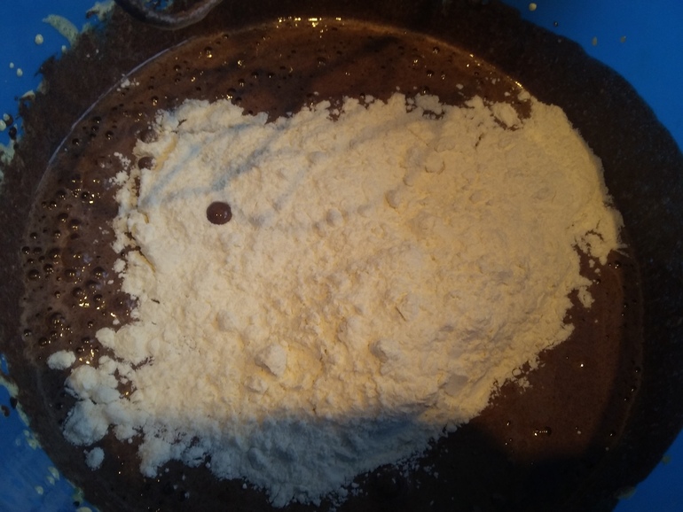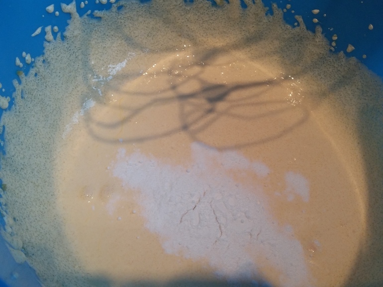Перемешать и добавить стакан муки: