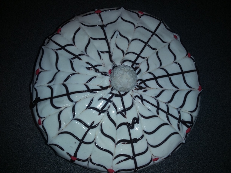 Украсить крошками от бисквита (рекомендуют еще кокосовыми стружками посыпать, но мы не любим):