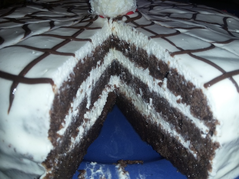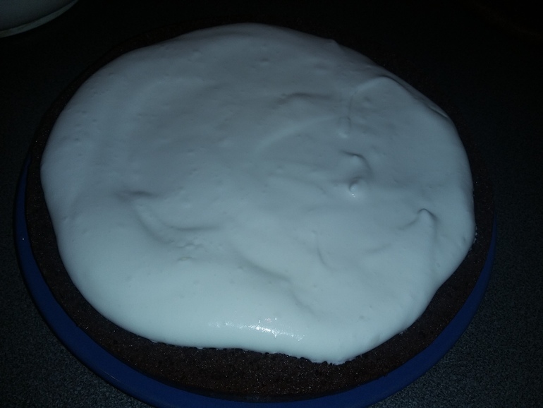 Перемазать коржи кремом. Залить верх и бока: