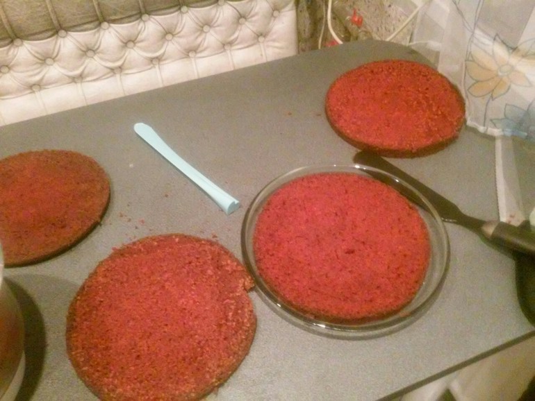 Так получилось, что два тортики пеклись практически одновременно: я делала черемуховый, доча - "Красный бархат".