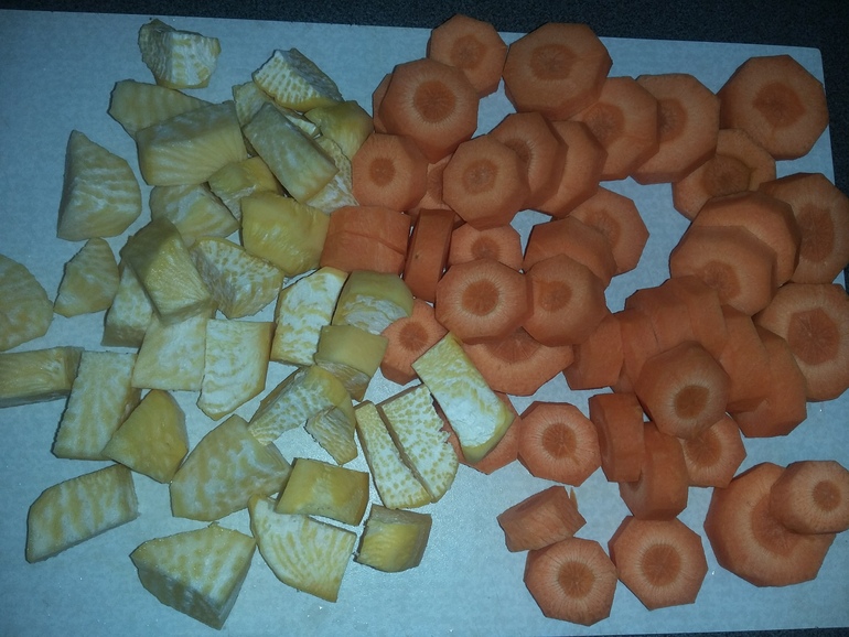 В это время подготовить овощи. Репа (тыква) и морковь: