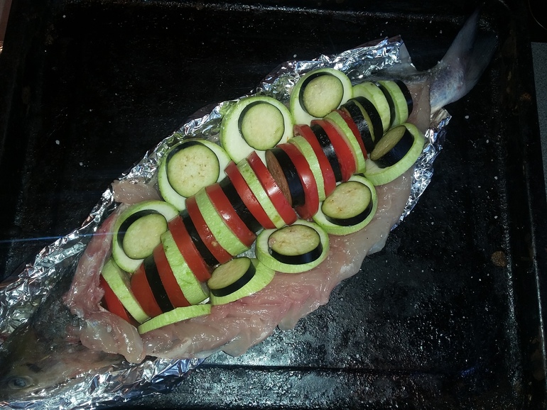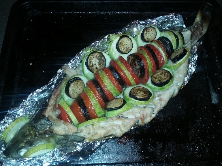 Посолить, сбрызнуть лимонным соком, поставить в жаркую духовку на 20 минут:
