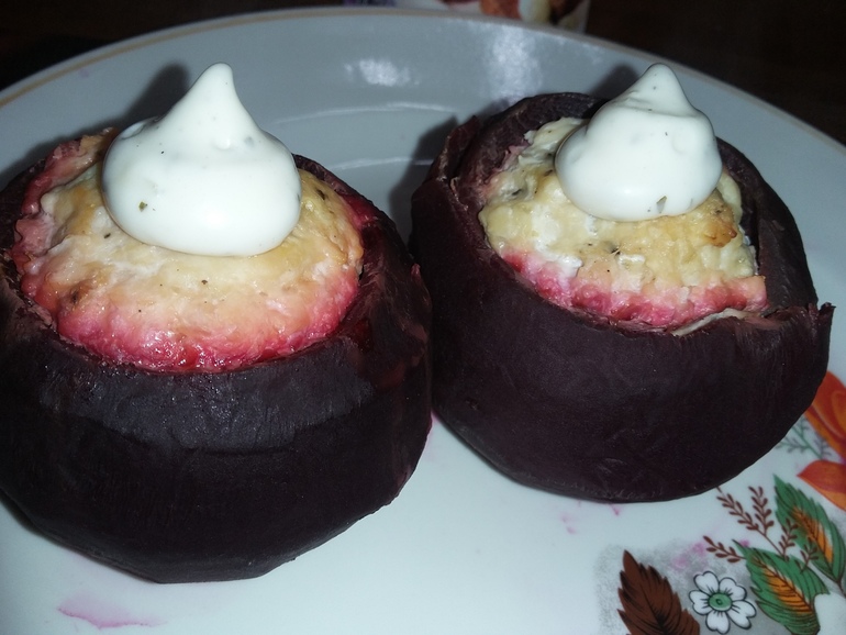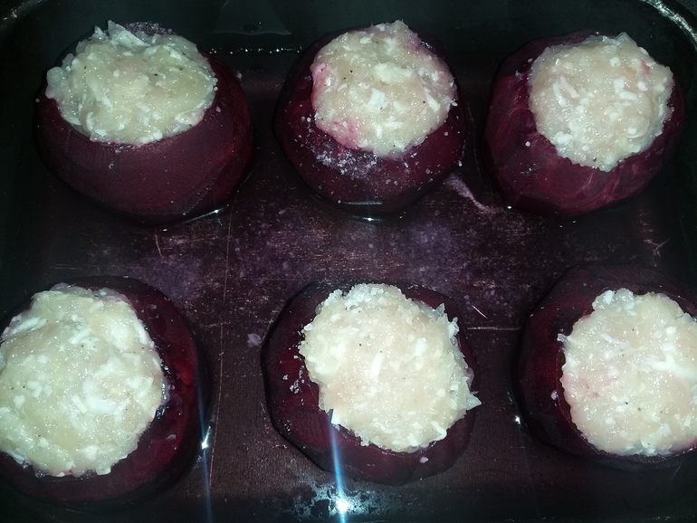 Сырую свеклу очистить, вынуть середину, натереть изнутри солью: