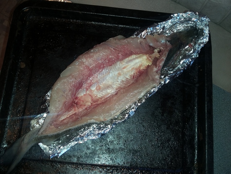Сделать разрез по спинке. Вынуть внутренности, хребет и реберные кости, удалить жабры: