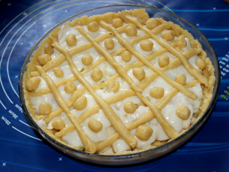 Выпекать пирог в заранее разогретой до 180° духовке 35-40 минут.