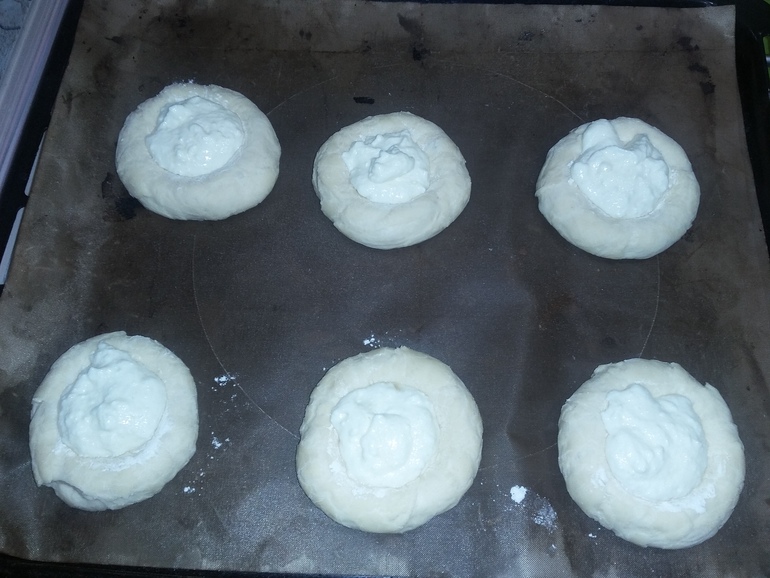 Выложить творожную начинку: