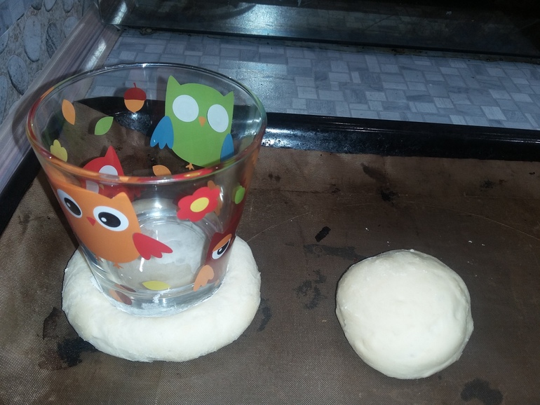 Обмакнуть стакан в муку и надавить на комочек: