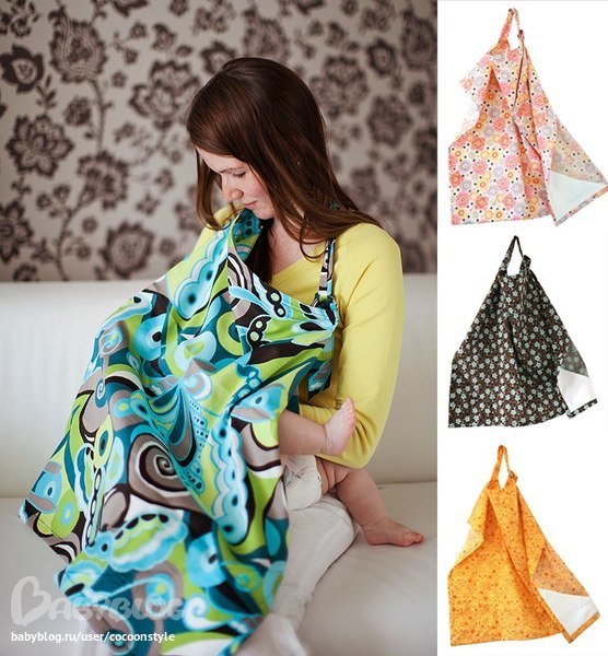 И при этом вам не надо ограничивать себя почти всегда некрасивыми моделями одежды для кормления, которая, к тому же еще и стоит довольно дорого. Вы можете носить свою любимую одежду, просто подобрав расцветку накидки к тонам одежды, в которых вы обычно одеваетесь.»