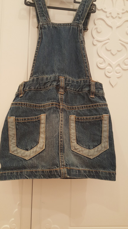 Еще один джинсовый сарафан (Topolino) цена 400руб. Маркировка 86 но сильно большемерит: длина юбки с поясом 26см, талия 25,5см, грудка без лямок до талии 13см