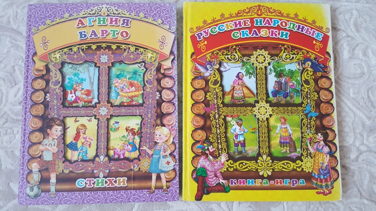 Русские народные сказки в отличном состоянии - книга игра, после каждой сказки задания (пройти лабиринт, ответить на вопросы и т.д. на проверку запоминания и понимания текста сказки); Агния Барто - любимые стихи, состояние на 4ку.