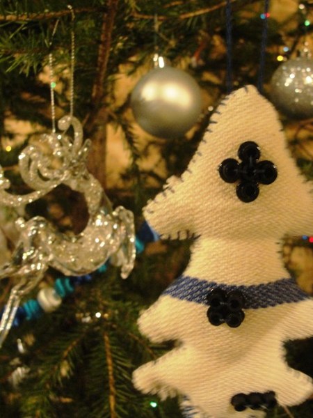 Дальше хвастаемся маленькими елочками, которые мы с мамой сами шили по наводке мамы Гоши - Евгении.