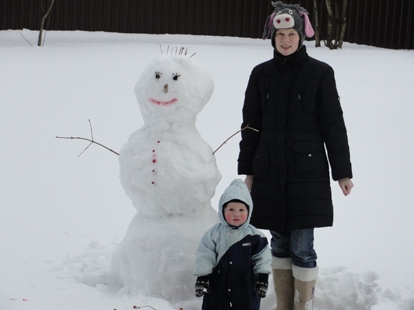 У того, что лепили по осени, голова отвалилась на следующий день, а растаял он без следа день на третий. Этот пока держится.