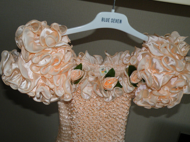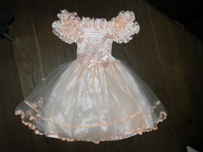 ПЛАТЬЕ С РЮШАМИ НАРЯДНОЕ. Указан рост 80, но можно и старше, чуть ли не до 5-6 лет. Резинки на груди, талии и рукавах очень свободно тянутся. экв. 700.