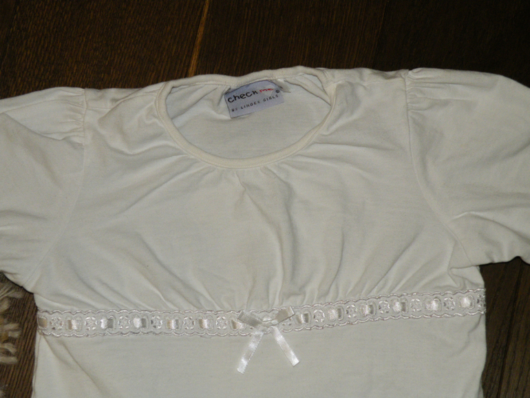 ВОДОЛАЗКА БЕЛАЯ С РЮШАМИ р.104. НОВАЯ, С БИРКОЙ. Цвет на самом деле молочный белый, на фото не удался. 400р.