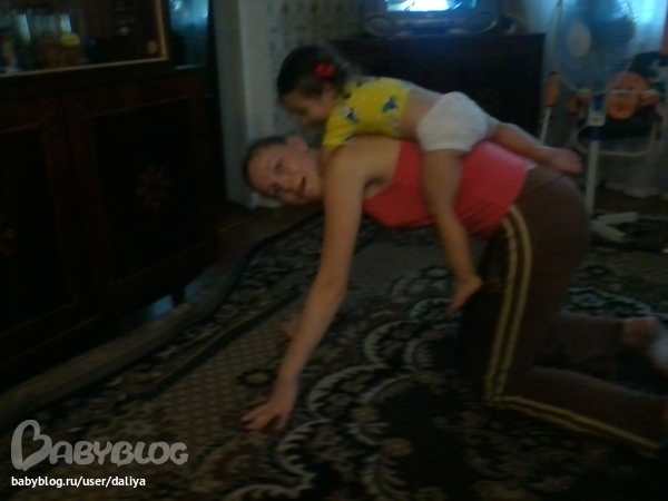 она скачет на ней как на лошадке))еще и приговаривет дыдык-дыдык))))умора)))))
