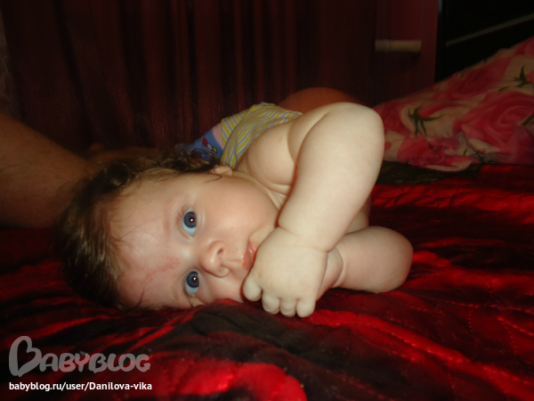 Пишу, что бы запомнилось! пошла пеленки в ванную относить, а муж с сыном на кравати играл, так захожу обратно, а муж говорит- сынуля переворачиваться с животика научился- я подумала, наверное и как раньше у него это не омознанно получалось, просто как то плюхался и все, а тут мы его подтолкнули на животик, пока старается, но не как, и он нам показательные выступления устроил- сначала улыбнулся, потом кувырк на бочок: так смешно, опять положили, взяла камеру, он сначала ждал, что я его сфоткаю, но не дождавшись улыбнулся и кувырк на бочок, потом на спинку! я рада, пусть и не так рано как у некоторых, все равно умница! манюничка мой любимый