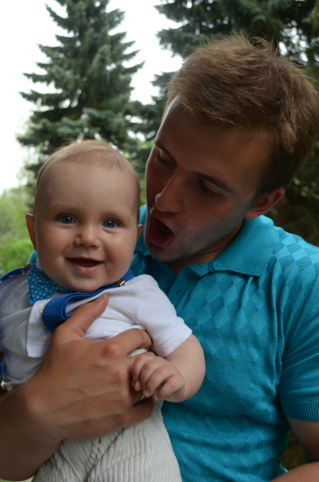 Маленький Сеня познает мир, радует маму и папу новыми достижениями. Уже запросто переворачивается на живот, сидит(но очень лениво, с поддержкой), любит нас и скучает, тянет ручки, смешно болтает на своем беззаботном языке... И все больше с каждым днем становится похожим на папу.