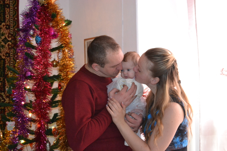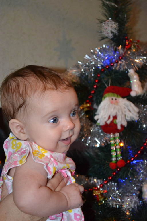 Доча уснула часов в десять вечера,но когда начали взрывать петарды и запускать салюты на улице, от шума проснулась. Смотрели на яркие огоньки за окном, Вероника улыбалась, ни капельки не испугалась. Поздравили папочку с Новым годом и пошли все вместе спать. Вот такой тихий, спокойный, семейный Новый год.