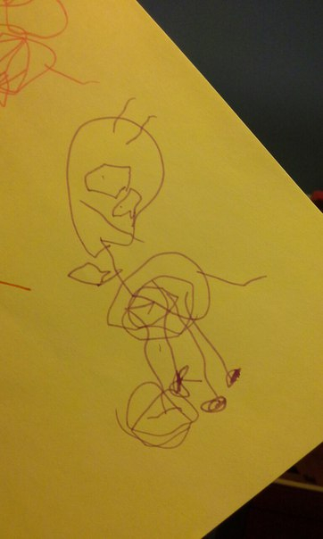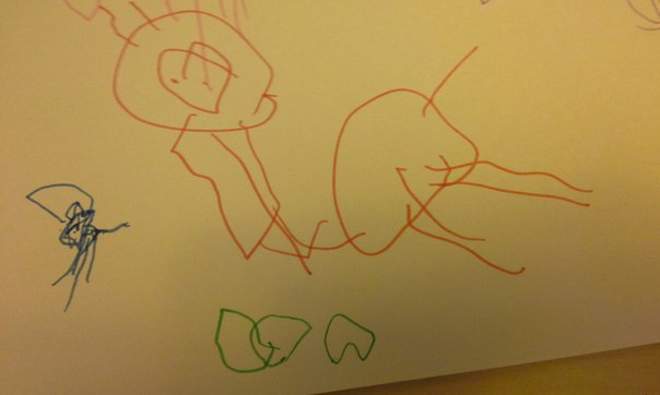 ИльнарКак же долго я ждала, когда же ребенок соизволит начать рисовать что-то не похожее на клубок. Не дождалась, сама показала, как рисовать человечков. И понеслаааась))) фотки телефонные, потому что он очень быстро все зачиркивает, пока я за фотиком сбегаю.