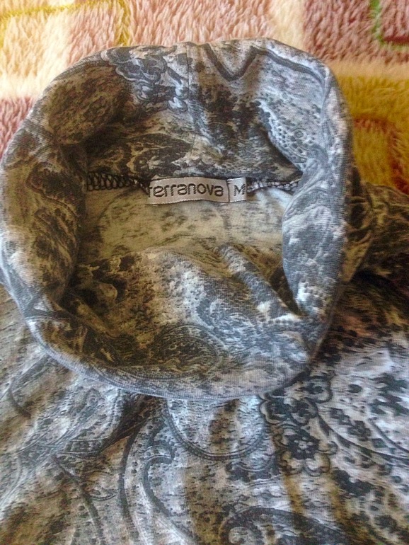 7. Футболка-блузка TERRANOVA, размер S, 42-44, красивый узорчатый принт, удобная, интересный ворот. Цена 100 р