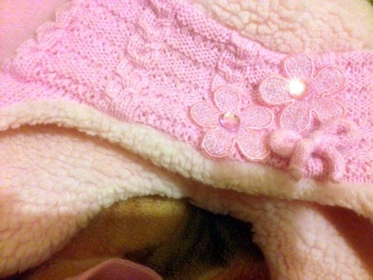 2. Шапочка-ушанка (48), надевали пару раз прошлой зимой на сильный мороз, больше не удалось, а в этом году уже маловата. Верх болоневый, не промокает, внизу овчина, застегивается на липучку, что очень удобно, так как не трет шею и можно регулировать плотность прилегания к голове. Смотрится очень классно :)