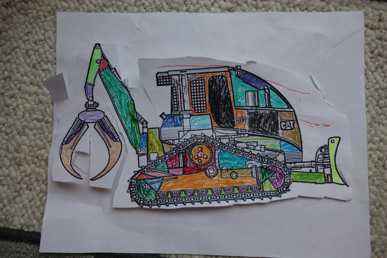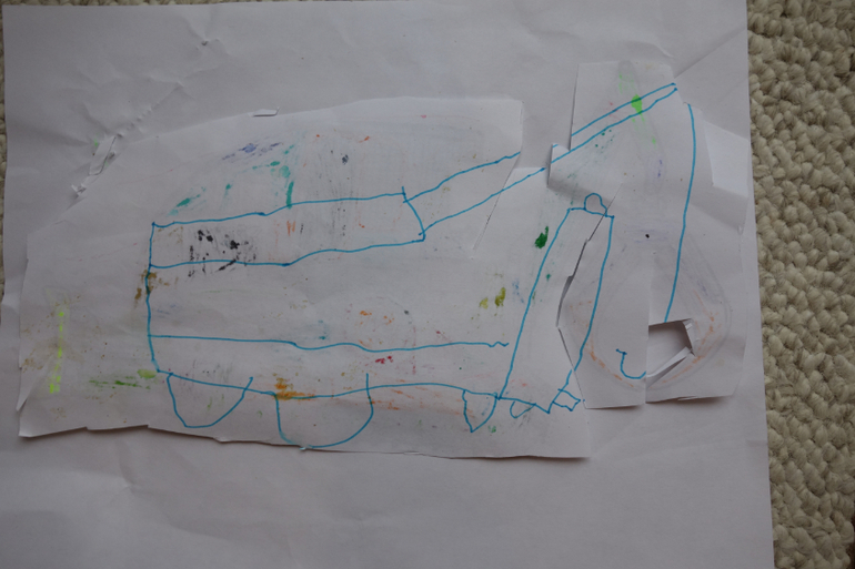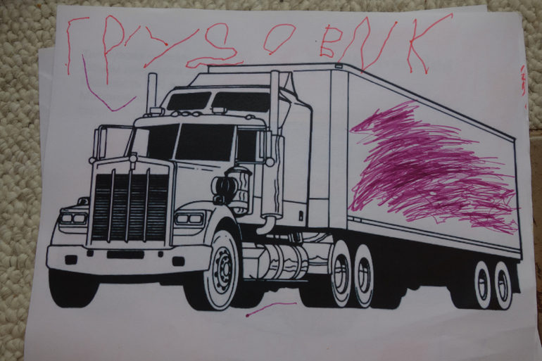 Мусоровоз. Разрисовал. Потом вырезал. Вернее, порезал. И склеил.
