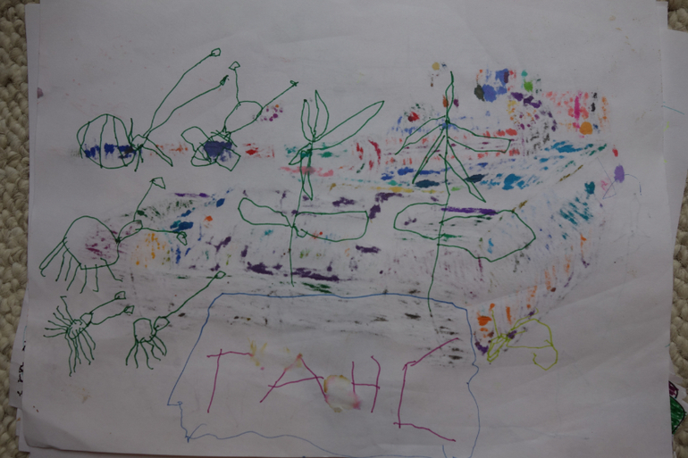 Видно еще, что только учится зарисовывать границы тонкими фломастерами.