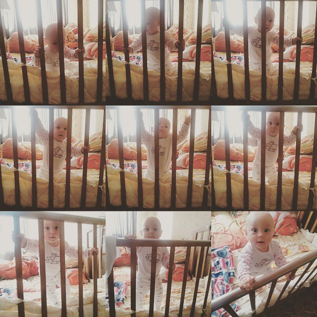 В восемь месяцев Аня наконец поползла на четвереньках, а не по пластунски. Тогда же и научилась садиться сама и вставать у опоры.