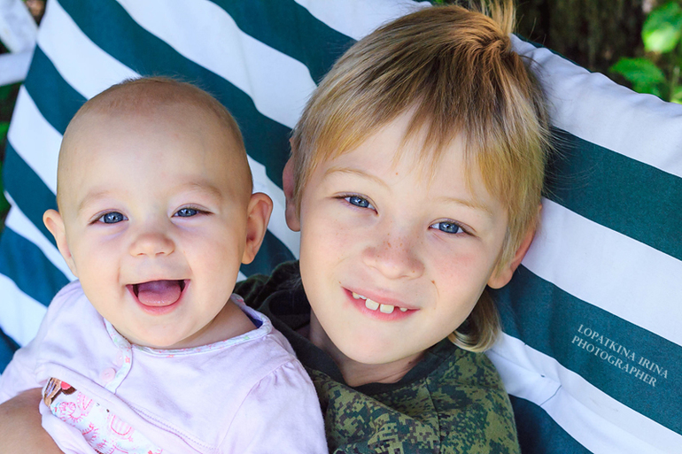 Очень любит брата. Мы с ним уходили, а бабушки про Антона заговорили. Аня давай головой вертеть. Ну бабушки и говорят: "Где Антоша? Нету Антоши!". А Аня как разревется. Очень расстроилась.