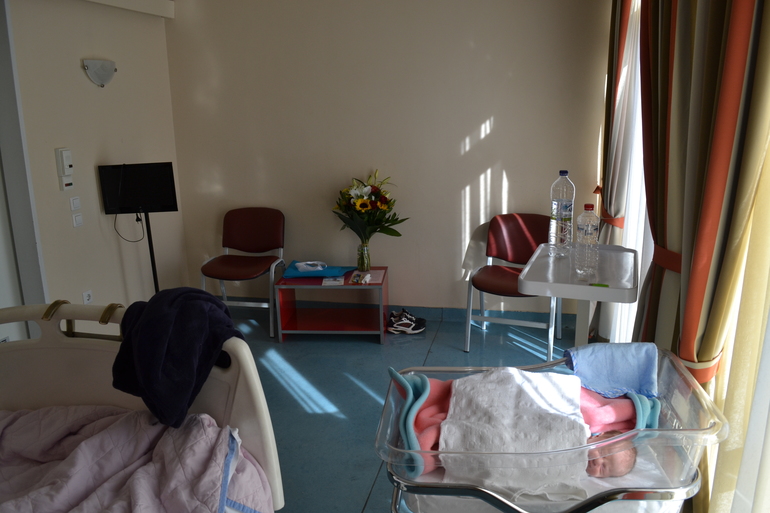 Пройдя все регистрационные и прочие процедуры, направились в родильное отделение на каталке... было жуткое ощущение не известности! Когда меня привезли в хирургию.. было несколько врачей: мой гинеколог, два пластических хирурга, две мед.сестры и одна - анестезиолог. До сих пор мурашки и холод в ногах от этого света, их зеленых форменных костюмов... Сделали эпидуральную анестезию, и с того момента, я вообще перестала понимать о чем они говорят, от состояния страха и шока, ноги казалось тряслись. У меня был тупо истерический смех и ужас в голове! Хорошо весельчаки попались, смеялись вместе со мной, чтобы я там не отвечала и как бы не говорила.. понимала я только своего врача, видимо роднее всех был)) хотя все были англоговорящие греки.