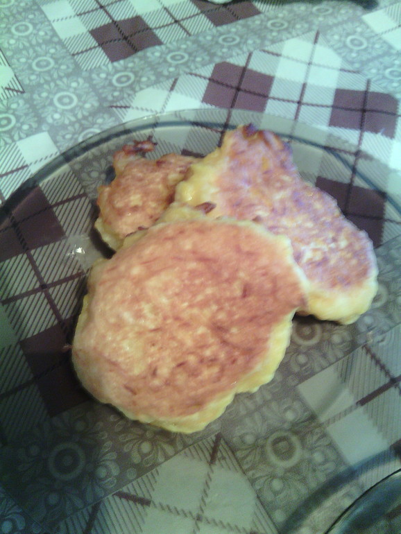 Тыкву натереть на мелкой терке, у меня грамм 300 было, добавить яйцо, сахар, я добавила 3 ст. ложки, можно меньше, щепотку соли, кефир, муку. Все делала на глаз, чтобы тесто вышло как густая сметана, и жарим на медленном огне.