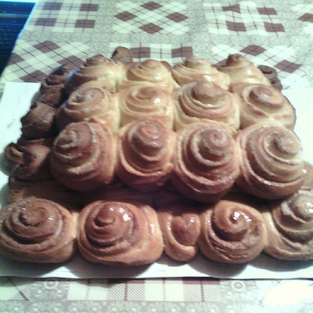 Чем вы заняты в это время? Я пеку булки)), вот такой пирог из двух ярусов вышел на завтрашний праздник деткам. #ПирогИзБулочек #булочкиСкорцей Сейчас доделаю булочки уже своим и спааать. Всем приятных и ароматных снов!
