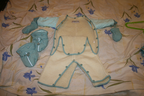 Овчина отстёгивается и получается сам по себе тёплый комбинезон на синтетическом наполнителе.