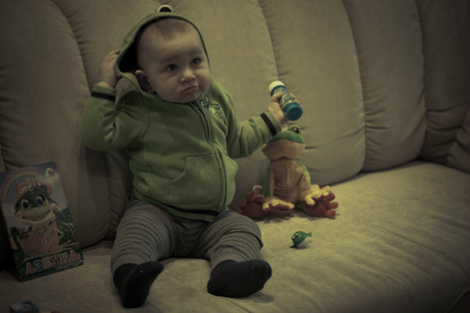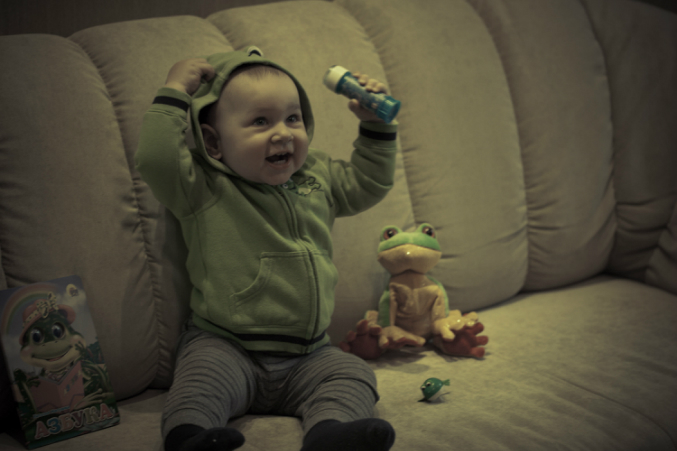 у него очень много лягушек, пока одевался сегодня гулять, сфотографировала))
