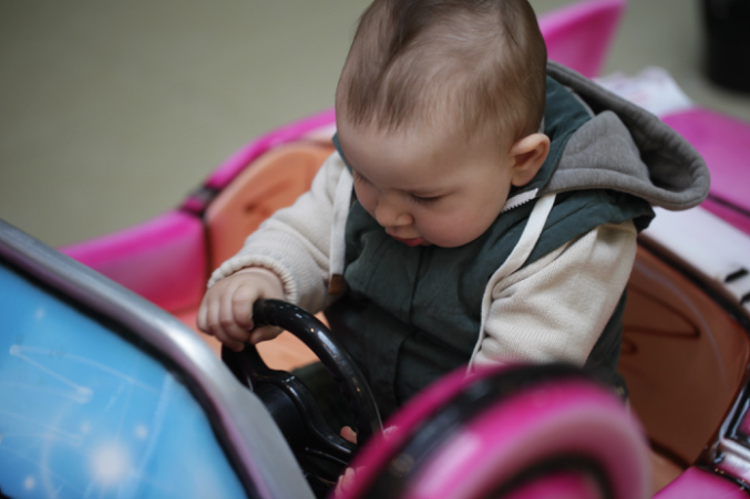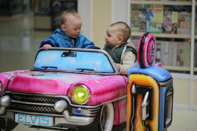 А еще в торговом центре стоит машина кадилак)) и Никита , сев за руль, сразу стал рулить)) как будто это делает каждый день))