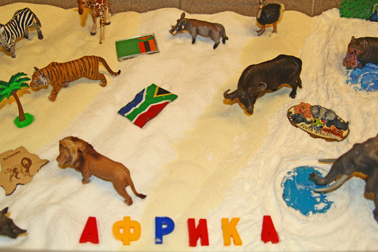 Какая же тематическая неделя без сенсорной коробки?) в ход пошли магниты, привезенные из некоторых африканских стран