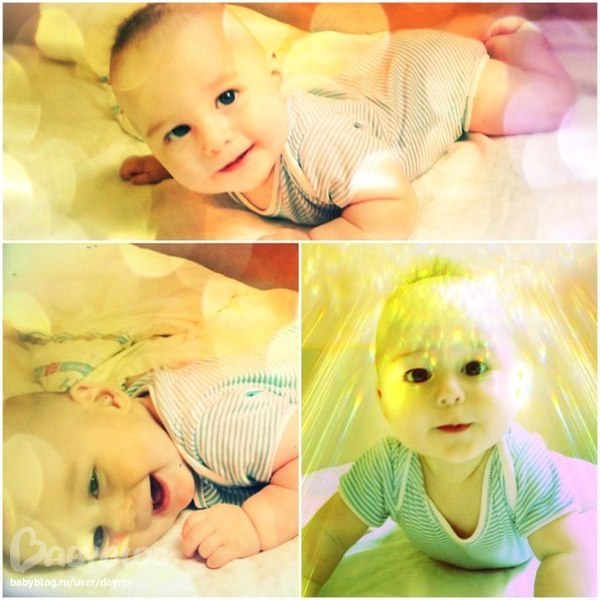 ползать пытаемся во всю, положила на один угол кровати, через 5 минут оказался у другого угла))) ручками еще не очень помогаем, а вот ногами работает хорошо, проталкивает себя вперед с таким упорством.... чую, к концу пятого месяца начнем ползать... ух.... только глаз да глаз...