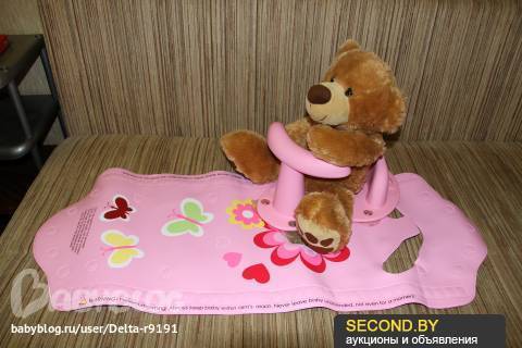 Из стульчика доча не вылазила, а термоковрик удобен,тем,что не скользко в ванной,если ребенок захочет встать + бабочки на коврике меняют цвет,если вода слишком горячая или холодная. Состояние идиальное. При необходимости отправлю живое фото.
