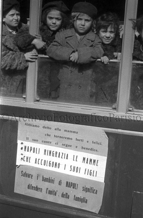 Очень впечатляет! Спасибо! неаполитанские мальчишки, босые, в трусах, повисшие гроздью на трамвае — это что-то.. и мама, моющая ребенка в корыте в коровнике... В Москве у нас есть старые мамины фотографии, где она тоже одета "с миру по нитке", в коротком (мало!) пальто, с разными пуговицами. А вот такая есть у меня тут, это 50-е годы. Детский летний лагерь. Мама — в первом ряду третья слева. Куклы достались только избранным))).