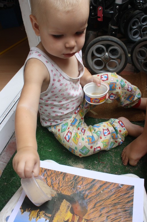 Мы сделали свою пустыню. Я привезла с деревни пакетик речного песка - пригодился