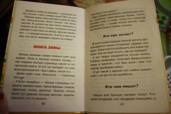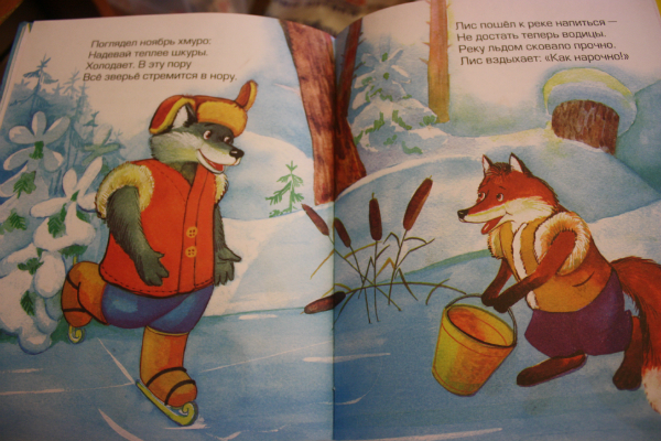 Вот эта книга не стала исключением. Конечно,здесь половина рассказов про детенышей, про гнезда, про домики, про хитрости леные всяки, ну а вторая часть о том, как звери гтовятся к зиме, есть еще книг азимы и синичкин календарь, вот пока м ычитаем про ноябрь и декабрь, пытаемся почувствовать переход от осени к зиме