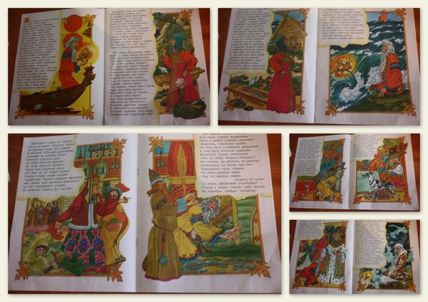Вообще, мне казалось, что рано нам такие сказки читать, когда нам подарили эту книжку. Лежала, она лежала, пока Дима ее не обнаружил, а обнаружив, меня замотал: "Мама, давай про рыбку, давай про рыбку!"