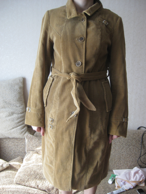пальто весенне-осеннее,носила 1 сезон, после химчистки, но провисело после этого в шкафу года 4...без капюшона (видимо он выл, но не знаю его теперешнюю историю))
